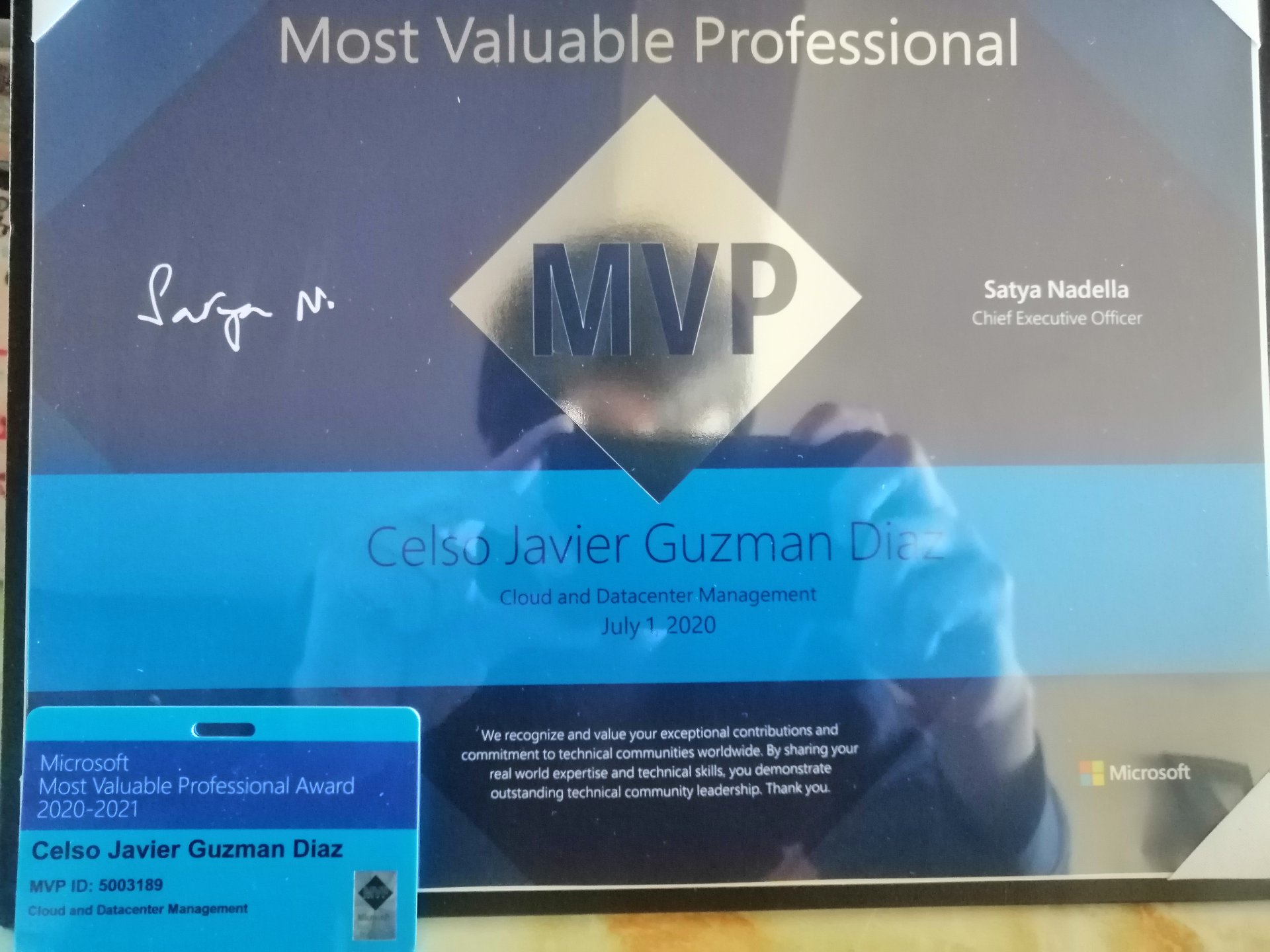 El 01 de Julio recibí un excelente correo electrónico en el que me otorgaron el premio Microsoft MVP Award 2020-2021 en la categoría Cloud and Datacenter Management por ¡tercer año consecutivo!, todo ello gracias a las contribuciones técnicas que he realizado a lo largo de todo este periodo.